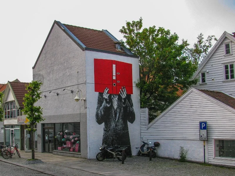 Подобные работы являются частью ежегодного фестиваля NuArt, проводимого в Ставангере с 2001 года. А свое время тут отметился даже сам Бэнкси, а судя по рассказам подписчицы в инстаграме, его Мона Лиза не дает покоя целомудрию многих духовных граждан современности XD