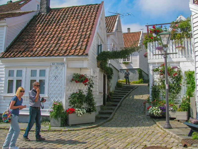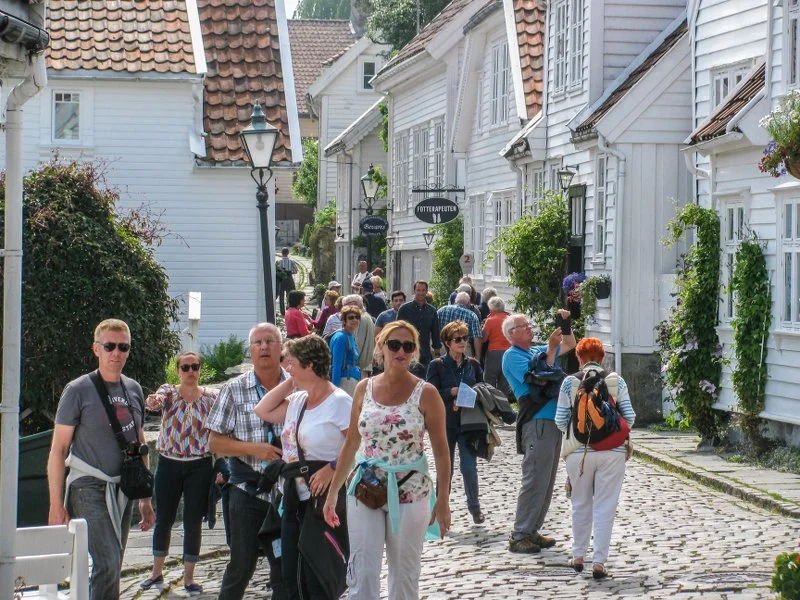Не смотря на то, что оба берега гавани обрамлены милыми деревянными домиками, между ними есть большая разница, и тот, что находится на противоположном берегу от башни Вальберг носит гордое название Гамле Ставангер, или Старый Ставангер. Тут впервые за все время пребывания в городе встретились толпы туристов!