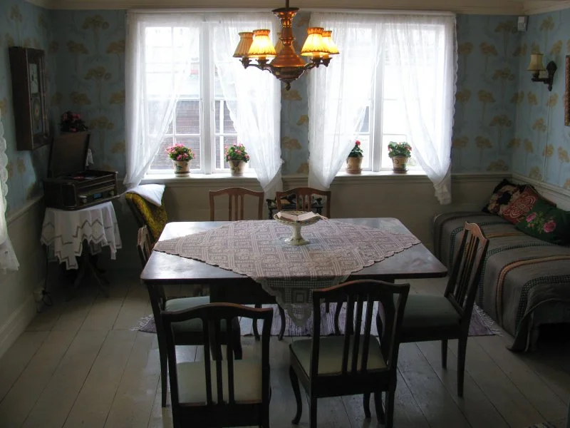 А всю эту красоту могли снести на волне перестройки после Второй мировой войны. Тогда почти все члены комитета высказались за уничтожение деревянных трущоб. За предложение были все кроме Эйнара Хедена (Einar Hedén), главного архитектора города. Он сумел отстоять и обосновать свою идея и вот благодаря ему уцелело около 170 домиков. С течением времени из заброшенных трущоб они превратились в престижные объекты культурного наследия, чтоб купить такой понадобится не меньше миллиона норвежских крон.