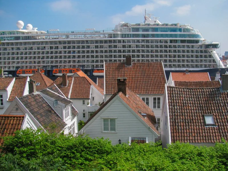 Особенно отчетливо соотношение размеров домишек видно на фоне современного круизного лайнера!