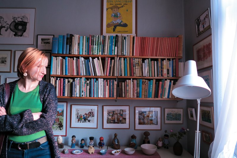 По сути, в каждой комнате все свободные пространства заполнены книжными полками, в гостиной на них можно увидеть ещё и массу сувениров и безделушек, среди них и подарок от подруги детства, которая стала прообразом героини нескольких повестей Мадикен.