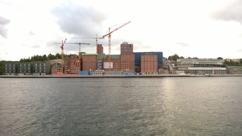 На Сёдермальме виднеются гигантские паромы, в частности те, которые отправляются в Хельсинки.