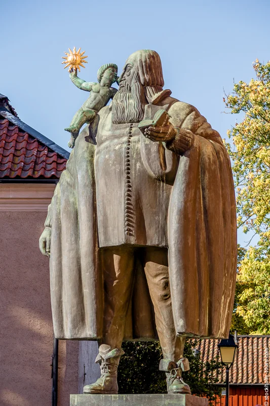 На почётном месте у самых дверей собора, на площади Домширкоплатсен (Domkyrkoplatsen), стоит памятник мужчине, на плече у которого сидит ангел. Это Йоханнес Рудбекиус, он был профессором Уппсальского университета, священником, а также приближенным лицом самого успешного шведского короля Густава II Адольфа. Король сделал его епископом Вестероса, и с этого начинается история Рудбекиуса в нашем сегодняшнем городе. Он провел тут 26 лет, и в Вестеросе Рудбекиус сделал вклад в развитие церкви и образования, за что его помнят и чтят в Швеции. Одним из главных его вкладов было создание самой старой в Швеции гимназии, которая теперь носит его имя.