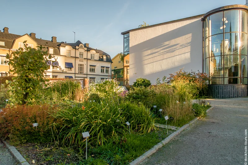Это уголок с «особой атмосферой» в прямом и переносном смысле. Благодаря тому, что сад спрятался между домами, он относительно защищен от ветров, к тому же достаточно близок к Мэларену, а значит почва достаточно влажная. Этакая маленькая Голландия!